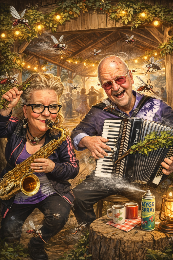 För den där lövade logen kan lika gärna bjuda på en kväll där myggen är fler än gästerna. Där bromsarna gör allt för att vara med i bandet och där man står och spelar med ena foten i takt och den andra i ett försök att vifta bort det som surrar. Det hör liksom till. Och på något märkligt sätt gör det också att man älskar det ännu mer.
